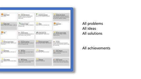 1) Capture all problems and annoying 2) Identify resolution ideas, their advantages and pressures 3) Create technical declensions and linked solutions 4) Define and set up the plans of actions allowing to prove the pertinence of every solution