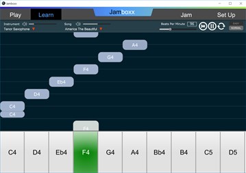 The Jamboxx software unlocks the full power of the Jamboxx MIDI wind controller. With the Jam mode improvise with different background tracks and scene animations (farm animals, guitar player, vehicles, swamp monsters, etc). Practice songs with guided tutorials with the Learn mode, or harness the full power of your performance in the Play mode (Jamboxx Pro only). The Jamboxx app is a great way to learn how to play the Jamboxx and have fun at the same time!