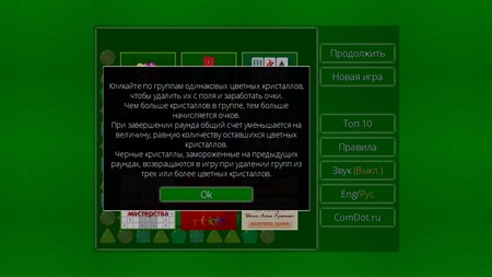Кликайте по группам одинаковых цветных кристаллов, чтобы удалить их с поля и заработать очки. Чем больше кристаллов в группе, тем больше начисляется очков. При завершении раунда общий счет уменьшается на величину, равную количеству оставшихся цветных кристаллов. Черные кристаллы, замороженные на предыдущих раундах, возвращаются в игру при удалении групп из трех или более цветных кристаллов.