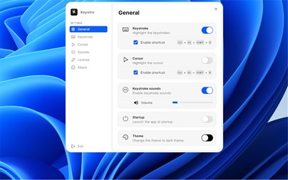 Show which key you pressing to your audience, Highlight Your Cursor, and Hear Realistic Keyboard Sounds! Available for Windows and MacOS. • Fully Customizable Floating Keystroke Widget. Personalize keycap colors and explore different styles and themes. Enjoy Flexible widget placement: Any pixel of your screen, Your choice! • Multiple Screen support Easily select any connected screen to display keystrokes. • 10+ Styles and Unlimited color themes Choose from 10+ styles and themes. Create your own custom theme. • Highlight the cursor Our cursor highlighter is highly customizable, Pick your shape, size, and colors. You'll effortlessly create a breathtaking design that will amaze your audience. • The sole focus is on the presentation Cursor Highlight lets you concentrate solely on your presentation content. • Satisfying sound with every keystroke Don't have mechanical keyboards? but love the sound of your keystrokes? Thock is the perfect feature we brought for you. • 10+ different keyboard sounds Select from 10+ different mechanical keyboard sounds. choose whatever sounds amuse you the most. • Why do you need to show keystrokes? Keystrokes are a great way to show your audience what you’re doing. shows keycap visualisations in a stunningly elegant way on your screen in an instant. Displaying keystrokes while lecturing, sharing, and recording your screen helps your audience to follow along with ease. Keyboard shortcuts are also essential for app demos, presentations, and how-to videos. Let your audience see which keys you’re pressing, so you can focus on your actual topic.