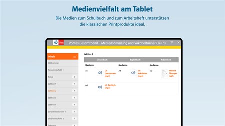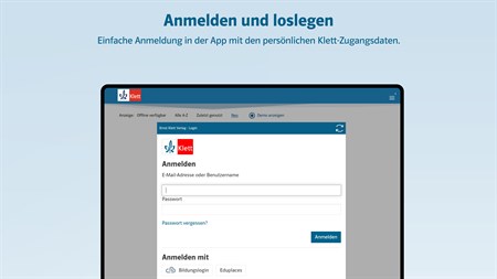 Klett Lernen App Nutzen Sie mit der kostenlosen Klett Lernen App die digitalen Produkte sowie Audios und Videos zu Ihrem Lehrwerk auch ohne bestehende Internetverbindung auf PCs, Tablets und Smartphones. • einfache Anmeldung in der App mit den Klett-Zugangsdaten für Schüler:innen und Lehrer:innen • alle lizensierten, digitalen Produkte werden auf einen Blick angezeigt • nach dem Download in die App sind die Produkte auch offline aufrufbar • Aktivierung neuer Produkte durch Eintippen des Lizenzcodes oder Nutzer-Schlüssels Folgende Produkte sind in der App nutzbar: eBook, Digitales Arbeitsheft, Digitaler Unterrichtsassistent, eCourse, eTraining, Medien zum Schulbuch und zum Arbeitsheft. Mehr Informationen zu den digitalen Produkten unter www.klett.de/digital.