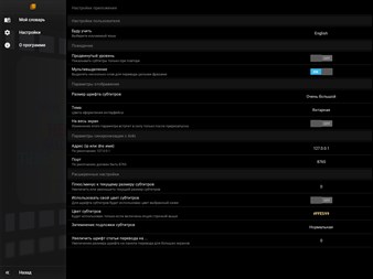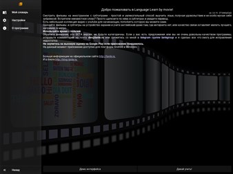 Изучайте английский, немецкий, французский, испанский, итальянский, польский, чешский, эстонский и белорусский языки по субтитрам! - Для всех языков доступен перевод фраз с помощью сервиса Google Translate. - Возможность продвинутого уровня изучения - когда вы смотрите фильм, субтитры не видны, но при клике по правой части видео фильм перематывается немного назад и на этот конкретный момент, включаются субтитры. Именно такой вариант просмотра заставляет вас учиться понимать речь на слух, а не читать её. - Благодаря сервису перевода от Google, можно переводить целыми фразами. - Есть небольшая библиотека с YouTube, там уже есть несколько фильмов для начинающих. Вы также можете расширять библиотеку самостоятельно. - Использование встроенных в файл субтитров. - Переключение аудиодорожек. - Для изучения английского есть вкладка с информацией о слове из Urban Dictionary.