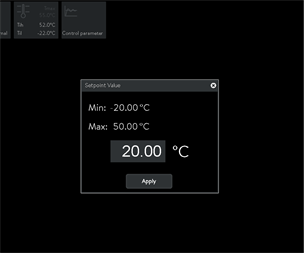 Our app offers a clear screen to get a quick overview of the current temperature control process, set safety and application limit values, as well as control parameters - even customizable according to your own wishes.