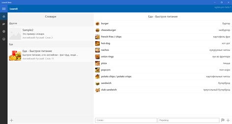 Особенности приложения: - Адаптивный дизайн (Continuum) - Поддержка нескольких дисплеев (1й и 2й тип тестов) (Continuum) - Создание, редактирование словарей - Проговаривание - Экспорт словарей в формате XML - 4 типа автоматически создаваемых тестов - Просмотр результатов тестов - 9 языков для словарей: Русский, Английский, Испанский, Немецкий, Французский, Итальянский, Украинский, Польский и Финский. - 4 языка перевода приложения: Русский, Английский, Украинский, Испанский.