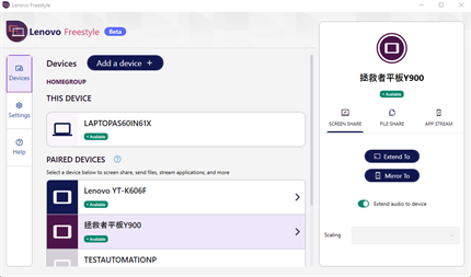 Lenovo Freestyle features Smart Display Collaboration technology that allows users to easily pair two devices (currently the Lenovo Tablets and a Windows 10 or 11 Lenovo PC) with a simple and secure pairing process, then seamlessly extend their desktop to the tablet for additional display real estate or mirror it when needed.