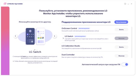 Вы можете легко устанавливать и использовать приложения, поддерживаемые вашим монитором, с помощью LG Monitor App Installer.