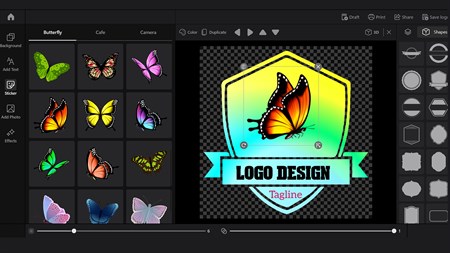 You will enjoy designing graphics with Logo Maker with so many icons of every category and colors in seconds.