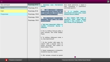 Это приложение - многоязычная платформа, равномерно интегрирующая Библию Короля Иакова (или похожие переводы) с Симфонией Стронга (только на английском языке) и текстами проповедей Уилльяма Бранхама.