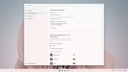 ✔️ VoiceOver (зачитывание уведомлений) Оффлайн диктор зачитывает уведомления из центра уведомлений Windows. Можно выбрать какие уведомления зачитывать, а также голос диктора (Доступно не для всех языков)
