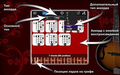Внимание! Lite версия предоставляет аккорды первых 4 нот. Для полного набора нот необходима полная версия программы.