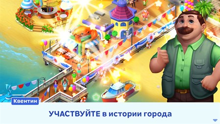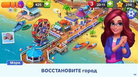 Добро пожаловать в Вест Хэвен Бэй! Когда-то этот пляжный город был курортом-мечтой, но теперь ему нужна ваша помощь, чтобы восстановить былую славу. Составляйте комбинации “три в ряд” и переходите от уровня к уровню, где на каждом повороте этой удивительной истории вас ожидают неожиданные приключения. Познакомьтесь с компанией очаровательных персонажей и постройте город своей мечты!