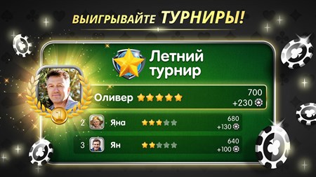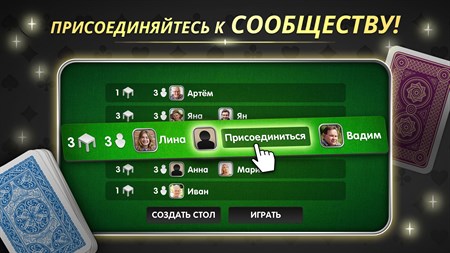 У нас любой игрок, независимо от своего уровня, найдёт соперников себе на равных условиях. Удовольствие от игры в карты - наш приоритет. Мы с нетерпением ждём вас за нашими столами. КАРТОЧНАЯ ИГРА С АКТИВНЫМ СООБЩЕСТВОМ – Играйте против реальных соперников в любое время. – Присоединитесь к активному сообществу игроков. – Общайтесь с другими любителями карточных игр.