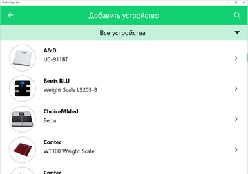 Поддержаны следующие модели ведущих мировых производителей: A&D UA-321, A&D UC-351PBT-Ci, A&D UC-352BLE, A&D UC-911BT, Beets Blue LS203, Contec WT100, Contec WT100BLE, iChoice S1, HMM SmartLab Scale W, Fora W310B, Fora Test N'GO Scale 550, Omron HBF-206IT, TaiDoc TD-2551, TaiDoc TD-2555, Tanita BC-590BT, Tanita HD-351BT, Tanita BF-2000 ANT+ и многие другие. Полный перечень совместимых MedM Connected устройств можно найти на нашем сайте: https://www.medm.com/ru/sensors