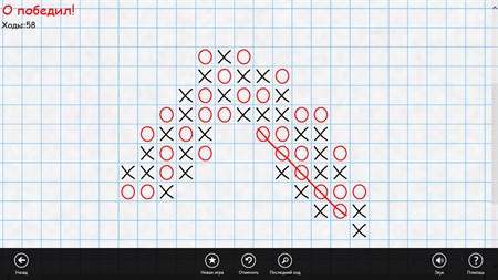 Присоединяйтесь к миллионам игроков, играющих в Крестики-Нолики! Чтобы выиграть, Вам прийдется создать 5 клеточек крестиков или ноликов в ряд бесконечном клеточном поле компьютера, оснащенного искусственным интеллектом и 5-мя уровнями сложности, или против друзей.