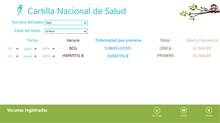 - Seguridad: Usuario y contraseña con capacidad de cambiarla cuantas veces sean necesarias así como la recuperación de la misma. - Cartilla Nacional de Salud: Incluye sección de registro individual para cada bebé registrado, consulta y recordatorios para prevenir que se olvide alguna toma. - Peso y Estatura: Registra y verifica si el bebé está dentro de los parámetros normales y cuando toque cita con el pediatra puedes enseñar las gráficas de peso y embarazo. - Diario Personal: Guarda todos los acontecimientos importantes para nunca olvidar los años más lindos de tu vida; los registros de esta sección pueden ser editables. - Recordatorios de Medicamentos y Citas Médicas. - OneDrive: Guarda toda tu información en la nube para evitar la pérdida de información con el dispositivo.