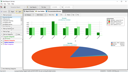 * Includes Customizable Transaction, Category, Tag, and Account Reports along with Income and Expense and comparison reports.