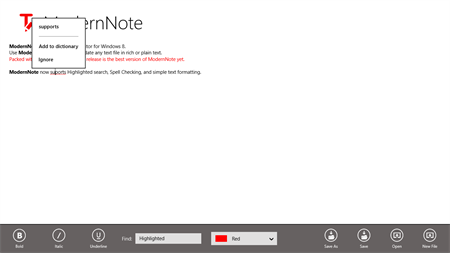 ModernNote allows you to create, view and edit rich text documents on Windows 8. By providing a simple and intuitive way to achieve all of the functionality you would expect of a modern text editor, ModernNote has become a popular choice for both home and professional users the world over.
