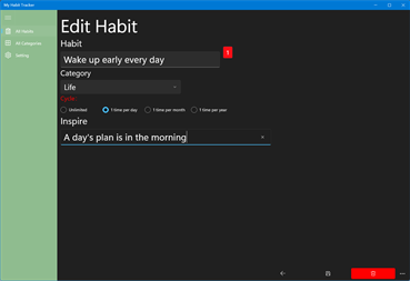 Habit Tracking Cycle: Unlimited number of times 1 time per day 1 time per month 1 time per year