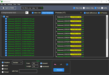 NB Renamer is a free bulk renaming tool. Compared to other batch renaming software, it has a dynamic and interactive interface. It automatically populates parameters for you when click or select on the file names and will preview the changes before the actual renaming takes place. Combining a succinct design with meticulous implementation, it strives to makes the whole batch renaming process easier and intuitive.