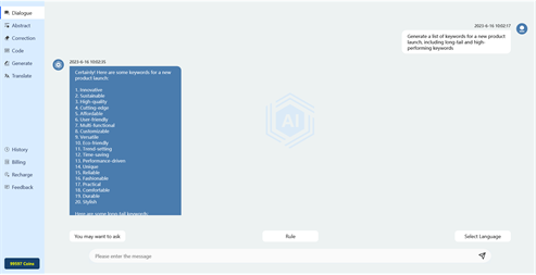 Code Generation: Simplify your coding tasks with our Conversational Robot's Code Generation feature. Whether you're a seasoned developer or a coding novice, our intelligent assistant can generate code snippets or provide guidance to help you accomplish your programming goals.