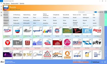 • Раздел GeoLocator – большой каталог станций, разделенный по географическим привязкам: Континентам-Странам-Регионам.