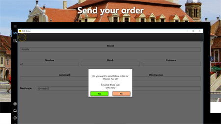 - Press the button "Continue the TAXI order" and confirm the order.