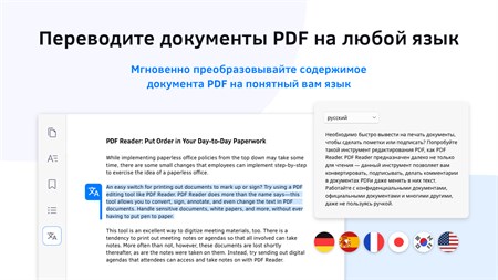 "KDAN PDF Reader - это умная альтернатива Acrobat Adobe PDF. Благодаря технологии искусственного интеллекта KDAN PDF Reader - это мощное решение для работы с PDF-документами на ПК с Windows, iOS, Android и устройствах Mac. Станьте экспертом в области PDF - используйте PDF Reader для аннотирования, редактирования, объединения, конвертирования, шифрования и подписания PDF-документов. Где бы вы ни находились - в школе, на работе, дома или в дороге. С KDAN PDF Reader вы всегда сможете работать со сложными PDF-документами. Наслаждайтесь постоянными возможностями редактирования PDF-документов на всех ваших устройствах. **Новые возможности искусственного интеллекта** - Авторедактирование текста (бета-версия): Защитите свои данные без лишних усилий. Используйте технологию искусственного интеллекта для обнаружения и редактирования конфиденциальной информации в документах. Идеально подходит для отраслей, которые постоянно работают с конфиденциальной информацией, таких как образование, юриспруденция, финансы, правительство, здравоохранение и другие. Бета-версия функции доступна исключительно для ""подписчиков Document 365"" в PDF Reader Windows. Вы еще не подписались? Начните 7-дневную бесплатную пробную версию и изучите новые возможности. Кампания по тестированию бета-версии заканчивается в середине апреля. - Мгновенный перевод: Легко читайте и понимайте содержимое PDF-файлов. Быстро переводите текст на более чем 100 языков. Вы можете легко редактировать и сохранять перевод. НАГРАДЫ И ПРИЗНАНИЕ - Лучшие офисные программные продукты на 2024 год по версии G2 - ""Самая быстрая реализация"" и ""Самый простой бизнес"" для малого бизнеса по версии G2 зимой 2024 года - Лучшие приложения для чтения PDF-файлов на 2020 год по версии Tom's Guide - Рекомендовано Techradar, Techworm, Softonic и Waerfa - Опубликованы на G2, Capterra и SourceForge ОСНОВНЫЕ ХАРАКТЕРИСТИКИ EDIT PDF - Заменяйте, редактируйте, добавляйте или удаляйте текст непосредственно в PDF-файлах. - Редактирование, обрезка и корректировка изображений в PDF-файлах - Вставка изображений в PDF-файлы - Заполнение и редактирование PDF-форм - Измените размер и цвет шрифта OCR PDF - Распознавание и извлечение текста из PDF-файлов - Экспорт результатов OCR в виде текста или PDF-файлов с возможностью поиска - Поддерживается 50+ языков БЕЗОПАСНЫЙ PDF - Редактирование текста (поиск или искусственный интеллект) - Добавьте пароли для блокировки PDF-файлов - Удаление паролей из PDF-файлов КОНВЕРТ PDF - Поддержка встроенного и облачного конвертера - Поддержка преобразования PDF в Word, Excel, PPT, текст, изображения и электронные книги (docx, xlsx, pptx, png, txt, rtf, ePub, AZW3 и MOBI). ПРОСМОТР ФАЙЛОВ - Изменение цвета фона PDF - Представление PDF-файла в виде слайд-шоу - Просмотр и проверка сертификатов и подписей в документах PDF - Просмотр нескольких PDF-файлов в виде вкладок - Просмотр PDF в одностраничном или двухстраничном режиме - Просмотр PDF-файлов в виде обычного текста (преобразование текста) - Горизонтальная или вертикальная прокрутка, режимы одностраничной или непрерывной прокрутки. - Поиск текста в PDF-файлах - Просмотр PDF в полноэкранном режиме РЕДАКТОР СТРАНИЦЫ - Поворачивайте, удаляйте, добавляйте и переставляйте страницы. - Извлечение страниц из PDF-файлов ПОДПИСЫВАЙТЕ И ПИШИТЕ В PDF - Подписывать контракты и соглашения с подписями - Создавайте и управляйте подписями из библиотеки - Добавляйте рукописные заметки в PDF-файлы (интегрировано с Windows Ink). АННОТАЦИЯ И РЕЦЕНЗ