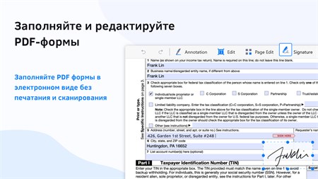 ЗАПОЛНЯЙТЕ И ПОДПИСЫВАЙТЕ PDF • Ставьте подписи на документы • Сохраняйте подписи и управляйте ими в библиотеке подписей • Добавляйте рукописные заметки