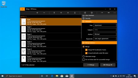 Combine multiple files into single PDF document. Alternate page merge supported.