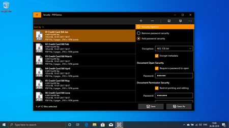 - Security tool to add, remove or modify password security of PDF documents in batch. - Allow to set PDF open document password and permission password with file restriction controls. You can define encryption level and key size for document encryption considering compatible PDF reader.