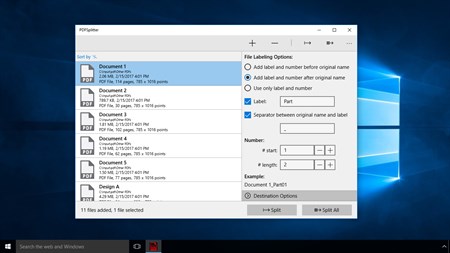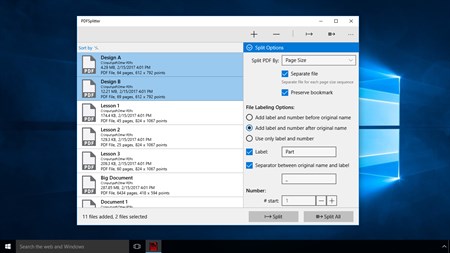 PDFSplitter is a fantastic tool to split or divide large PDF document into smaller PDF files. Split single or hundreds of PDFs into smaller PDF parts in no time at one go. It allows user to split PDF document using six different divide criteria: split by page count, split by file size, split by file size, split by outline, split by page range, split by page size and split by odd and even pages. In addition, it preserves source PDF document’s bookmarks in output PDF files.