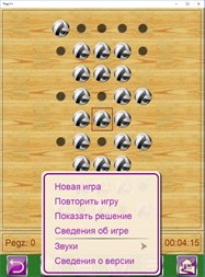 Pegz содержит 4 игры, предоставляя возможность играть на британской или европейской доске, популярной треугольной доске, или на одной из 50 досок специальной формы.