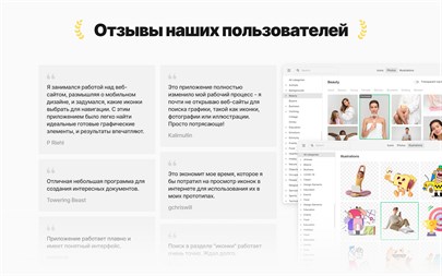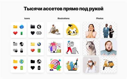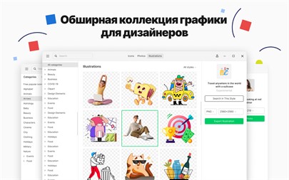 Вы найдете: — Более 120 стилизованных pixel-perfect’ных иконок от лучших UI дизайнеров в самых разных форматах: PNG, ICO, SVG, PDF, EPS, XAML и других. — Несколько тысяч иллюстраций, созданных известными художниками Dribble. Плоские или объемные, векторные или растровые — каждому найдется иллюстрация по вкусу! — Огромная галерея фотографий без фона с людьми, животными и предметами, снятых профессиональной командой. Каждый элемент распределен по категориям, отсортирован по стилям, и легко ищется по ключевым словам.