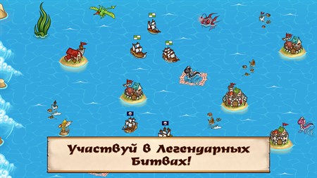 ЗАХВАТЫВАЙ РЕСУРСЫ Планируй свою стратегию и атакуй острова и корабли соперников, чтобы захватывать товары, сокровища и оружие. Сражайся с морскими чудищами и исследуй места кораблекрушений, чтобы получать дополнительные трофеи.