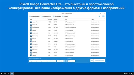 Pixroll Image Converter Lite - это быстрый и простой способ конвертировать все ваши изображения в другие форматы изображений. Он поддерживает большинство популярных форматов файлов, таких как .heic, .jpeg, .png, .tiff, .gif, .bmp и многие другие. Для конвертации вам не нужно подключение к интернету, просто добавьте файлы в приложение, выберите свой формат и нажмите конвертировать! ⚠ Внимание! Приложение Pixroll Image Converter Lite содержит рекламу и водяной знак при конвертации изображений. Конвертация изображений без водяных знаков и рекламы доступна в полной версии. Обратите внимание: приложение не поддерживает Windows 10 S. ⭐ Особенности ⭐ ✅ Конвертируй .heic, .jpeg, .png, .tiff, .gif, .bmp, .svg, .psd, .dib, .wdp, .webp, .ico, .umb, .raw, .jfi, .jpe, .jpg, .jxr и более 100 форматов изображений в .jpeg, .png, .tiff, .gif, .bmp, .pdf, .webp, .ico, .dib. ✅ Применяйте настройки к изображениям во время преобразования. ✅ Выбирайте размеры слоя значков для формата ico. ✅ Перетаскивайте файлы в приложение для вашего удобства. ✅ Предварительный просмотр ваших изображений. ✅ Быстрое и не требовательное. ✅ Не требуется подключение к интернету. ✅ Простота в использовании. ✅ Тёмная и светлая тема.