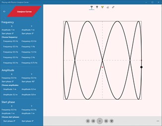The "Lissajous Curves" app displays curves that result from the composition of two mutually perpendicular oscillations. The user selects the frequency of the stacked oscillations in the basic level. In the advanced level, he has the possibility to choose their amplitudes and initial phases.
