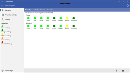 Пыльца приложение представляет собой приложение API на базе, с которой вы можете быстро и легко увидеть количество пыльцы для вас в вашем городе в Германии, Австрии и Швейцарии, а теперь новый bioweather карта пыльцы! Новое приложение включает в себя несколько аллергены: орешник ольха ясень береза злаки рожь полынь и Ambrosia