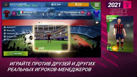 Почувствуйте радость от управления собственным любимым футбольным клубом – принимайте активное участие на всех уровнях Приведите свою виртуальную команду к победе, контролируя все аспекты жизни своего личного профессионального футбольного клуба. Делайте ставки на игроков, когда вы следите за «живым» трансферным рынком, тренируйте свою команду, ведите переговоры по заключению контрактов для своих футболистов, а также наслаждайтесь футбольным менеджментом в реальном времени, организовывая матчи для своей команды. Стимулируйте свою команду к победе с помощью мотивирующих выступлений в ежедневных мини-играх. Управляйте своей любимой реальной футбольной командой.