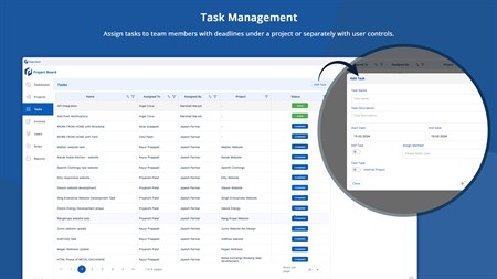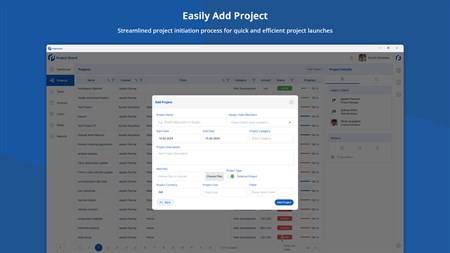 Key features include: Add Projects Easily: Easily create and customize projects with detailed descriptions, categories, costs, and end dates, all within a few clicks. Collaborative Task Management: Assign tasks to team members, set clear deadlines, and track progress in real-time, ensuring smooth workflow management and efficient task completion.