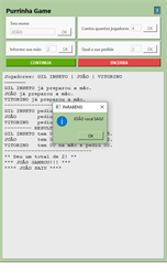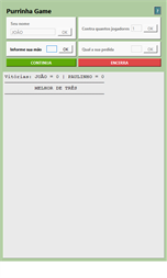 Purrinha, também conhecido como "jogo do osso" ou "morrinha" em algumas regiões. Dependências: Este aplicativo requer o pacote Microsoft Visual C++ Redistribuível para funcionar. Mergulhe no Purrinha Game, um jogo tradicional de adivinhação que testa sua habilidade em prever as jogadas dos adversários. Ideal para dois ou mais jogadores, este jogo envolve cada participante escolhendo secretamente uma quantidade de pontos e apostando no total que será revelado por todos. Ganha quem acertar exatamente a soma dos pontos mostrados! Participe dessa tradição milenar e desafie suas habilidades de adivinhação no Purrinha Game!