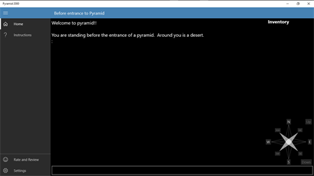 "You are standing before the entrance of a pyramid. Around you is a desert."