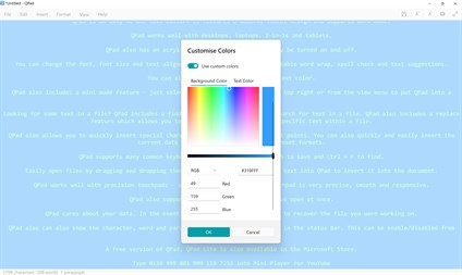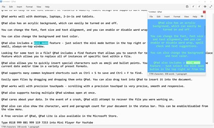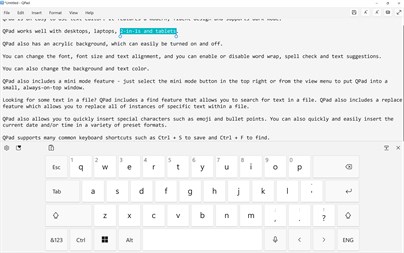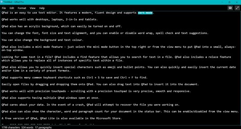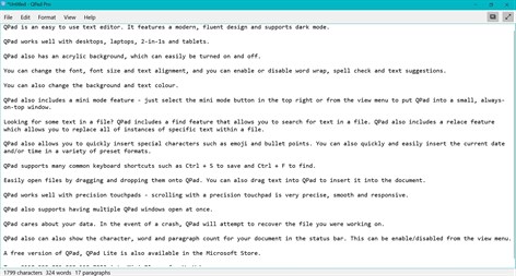 QPad is designed to work with desktops, laptops, 2-in-1s and tablets and has most of the features of Windows Notepad plus more, including the ability to set custom text and background colors, enable/disable spell check and autocorrect, and even show character, word and paragraph count.