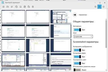 быстро экрана позволяет снимков экрана очень эффективно и быстро. он содержит следующие функции: сцена 1: окно скриншоты сцена 2: поверхность экрана сцена 3: изменить экрана сцена 4: захват цвет экрана сцена 5: копия картины буфер в файл сцена 6: многочисленные скриншоты сцена 7: настройки визит https://github.com/myado/quickscreenshot/wiki для понимания информацию.