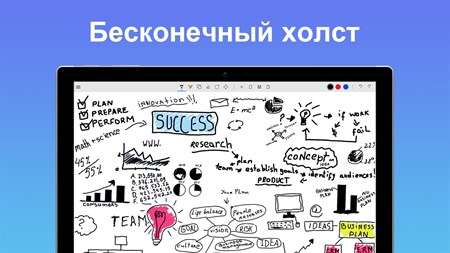 Мощные функции • Работа с различными инструментами рисования, такими как шариковая ручка, маркер, ластик. • Разметка PDF-документов и изображений. • Используйте Infinite canvas для представления своих идей