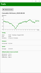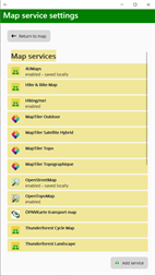 An application for displaying maps for walking and hiking. Maps can be stored offline for when you have no internet connection. OpenStreetMap and several other services are available by default, or you can add others by supplying the address of a WMTS service. You can display GPX files and create them from your own walks using GPS tracking.