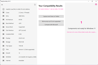 To determine if your current PC will be able to run Windows 11, you can check out this list of system specifications on Microsoft's website, or use its PC Health Check app. Unfortunately Microsoft removed temporarily this key tool people were using to see if they could update. This is where the replacement ReadySunValley app comes in.