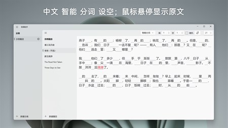 • 字词设空:按汉字或西文单词设空,可选择固定的连续字词数和连续空白数,或者随机数量 • 中文智能分词:使用此模式,中文内容不是按汉字设空,而是按中文词语设空 • 句子设空:以句子而非字词为单位设空,同样可选择固定或随机数量 • 首字词提示模式:只显示每句或每段第一个汉字或西文单词,适合背诵不熟练时接不上下一句或下一段的阶段 • 自定义模式:自己选择要设空的内容,可以将重点内容设空。适合记忆重点,而非全文背诵的情况 应用介绍: 把一段文字隔字或隔句设空,用大脑记忆力填空,然后对调设空的内容,再次填空……如此反复,可以激发和强化对这段文字的记忆,对背诵有很大的帮助。 现在,你不用自己动手遮盖要背诵的内容,把这份枯燥的活交给《背诵助手》吧!它可以用多种方式自动帮你设空,你只需对着设空后的文本不断地练习背诵,直至滚瓜烂熟,倒背如流。如果遇到想不起来的空,鼠标悬停(触摸屏轻按)即可显示答案。 应用特性: • 高效背诵:文本自动设空,用填空的方式调动记忆 • 双语支持:支持中英文本设空 • 既可按汉字或英文单词设空,也可按句子设空 • 多种自动设空模式:固定设空数、随机设空、对调空格、句段首字词提示 • 中文智能分词设空 • 支持自定义设空:自行选择设空位置,有针对性地对重点内容进行记忆 • 答案速览:只需将光标悬停于空格,即可显示答案 • 分类管理:将篇目分组到不同的分类中,便于管理 • OneDrive 云同步 为什么《背诵助手》能让背诵练习变得更高效? 回想一下我们平时是如何练习背诵的——通常,我们面对一篇完整的文本,一遍遍地朗读它,并且时不时地合上文本或将目光移开,尝试将所读位置之后的内容背诵出来,如果发现忘记了,就再看一眼,直至能够熟练背诵。每次你尝试往下背诵时,就相当于在给要背出的内容“设空”,然后调用你的记忆力进行“填空”,这就像在考试中做填空默写题一样。《背诵助手》可以将你录入的内容自动设空,让你在不用回避原文的情况下快速练习背诵。它可以在两个层次上设空:首先是字词层次上——通过细致地回忆每一个字词,你甚至可以做到不漏、不多、不错一字的原文背诵;其次是句子层次上——背诵过程中经常遇到的问题是背了上句,想不起下句,通过句子填空,能让你在脑海中快速建立起所有句子之间的顺序和关系,从而打通全文。《背诵助手》还支持设置设空的字词数和句数,以及两空之间隔开的字词数和句数,你还可以选择随机设空,这样,每次背诵都像是面对一道全新的填空题,让你在不知不觉中发现自己已经能够熟练背诵了。