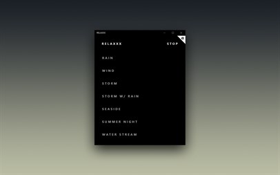 NINE DIFFERENT SOUNDS: - RAIN - WIND - STORM - STORM WITH RAIN - SEASIDE - SUMMER NIGHT - WATER STREAM - FIRE - GARDEN