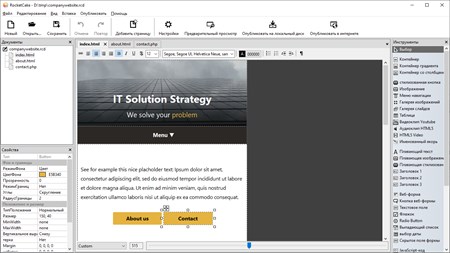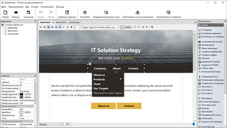 RocketCake - это дизайнер веб-сайтов для создания адаптивных веб-сайтов для начинающих и профессиональных веб-разработчиков. Никакого программирования не требуется.