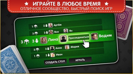 КАРТОЧНАЯ ИГРА С АКТИВНЫМ СООБЩЕСТВОМ – Играйте против реальных соперников в любое время. – Присоединитесь к активному сообществу игроков. – Общайтесь с другими любителями карточных игр.